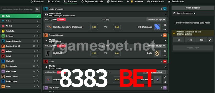 A aposta 8383 Bet oferece aos jogadores a experiência mais conveniente de apostas em eSports!